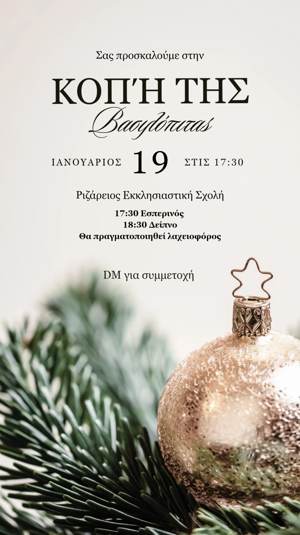 Σας προσκαλούμε και φέτος στην εκδήλωση κοπής της πρωτοχρονιάτικης βασιλόπιτας !